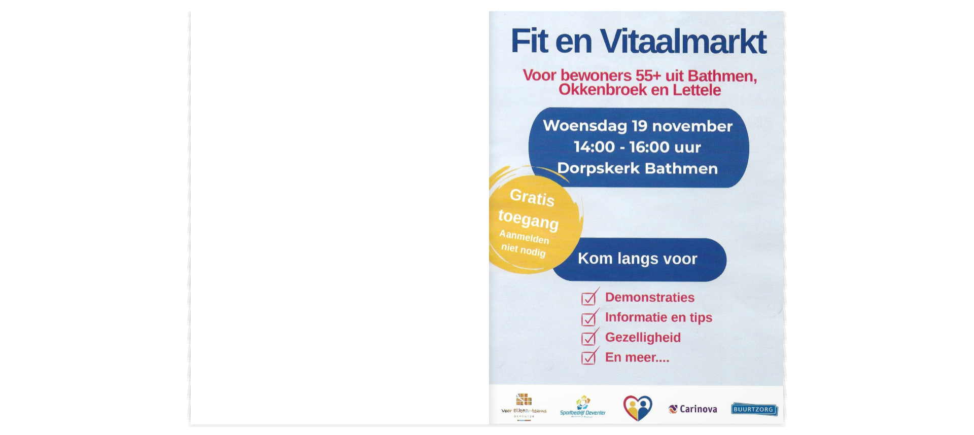 Twee dagen eerder vindt in dit kader ook een fit en Vitaalmarkt plaats in de dorpskerk. Lees hier de informatie.
