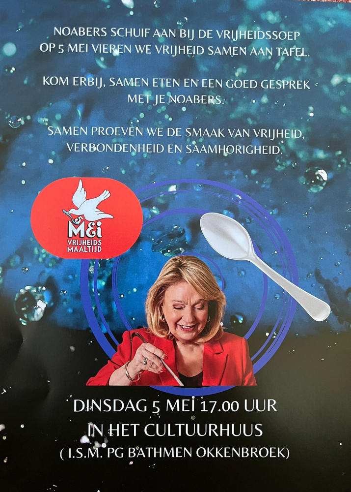 Op 5 mei vieren we de vrijheid, samen aan tafel in Cultuurhuus Braakhekke te Bathmen. | ||